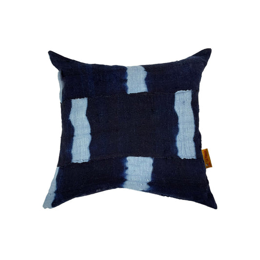 Coussin Boliba – couleur Indigo & Motifs Réservés à l’Aiguille | Élégance & Héritage